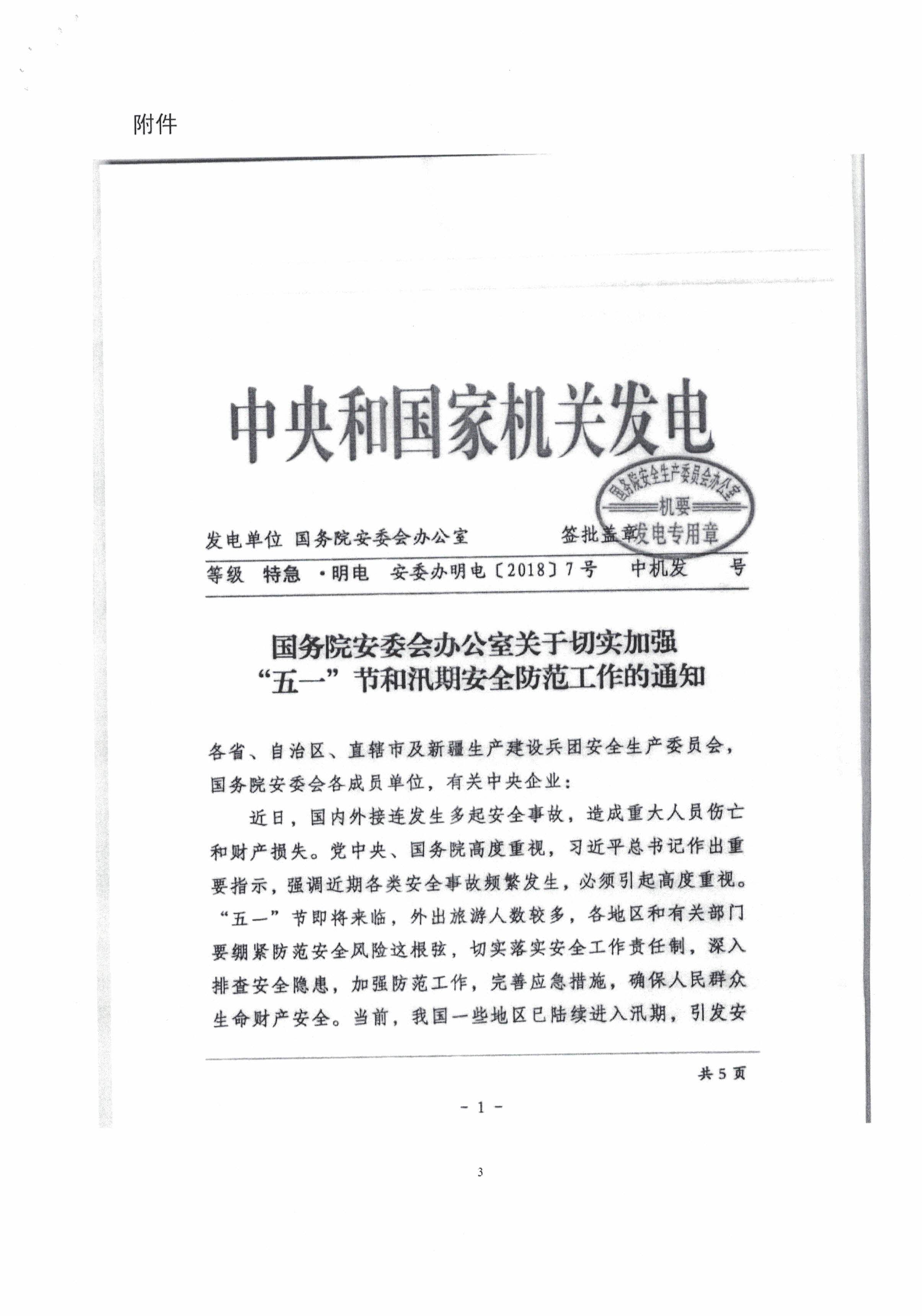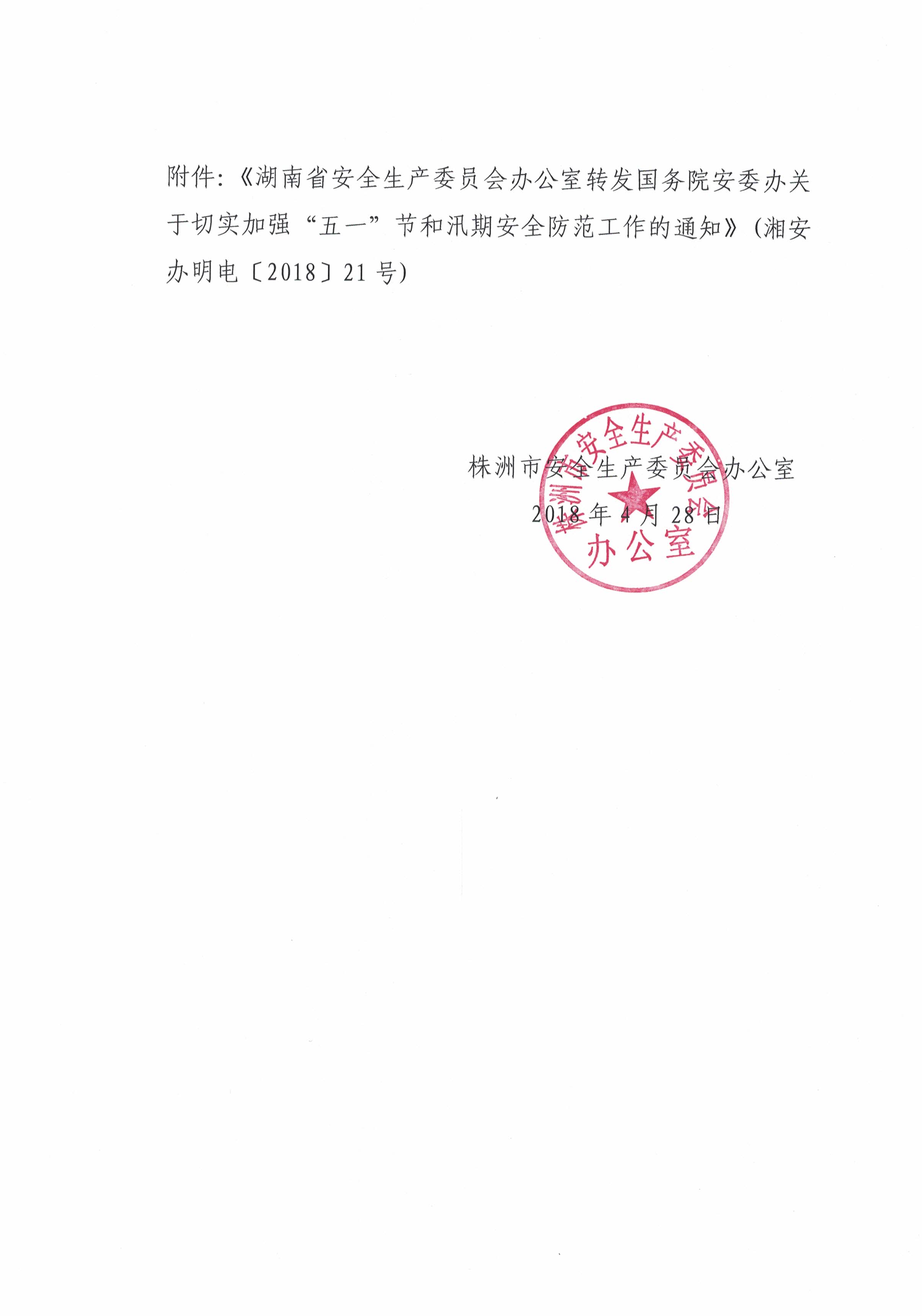 株洲市安委办关于转发《湖南省安全生产委员会办公室转发国务院安委办关于切实加强“五一”节和汛期安全防范工作的通知》的通知